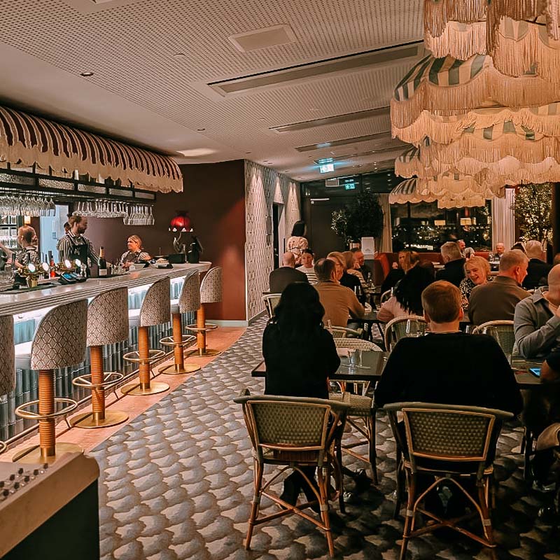 På menyen står snack-retter, noen hovedretter og sideretter – perfekt for deling eller som en lettere middag. Vil du ha et mer omfattende måltid, finner du et bredt mattilbud i hotellets restaurant Grenseløs.